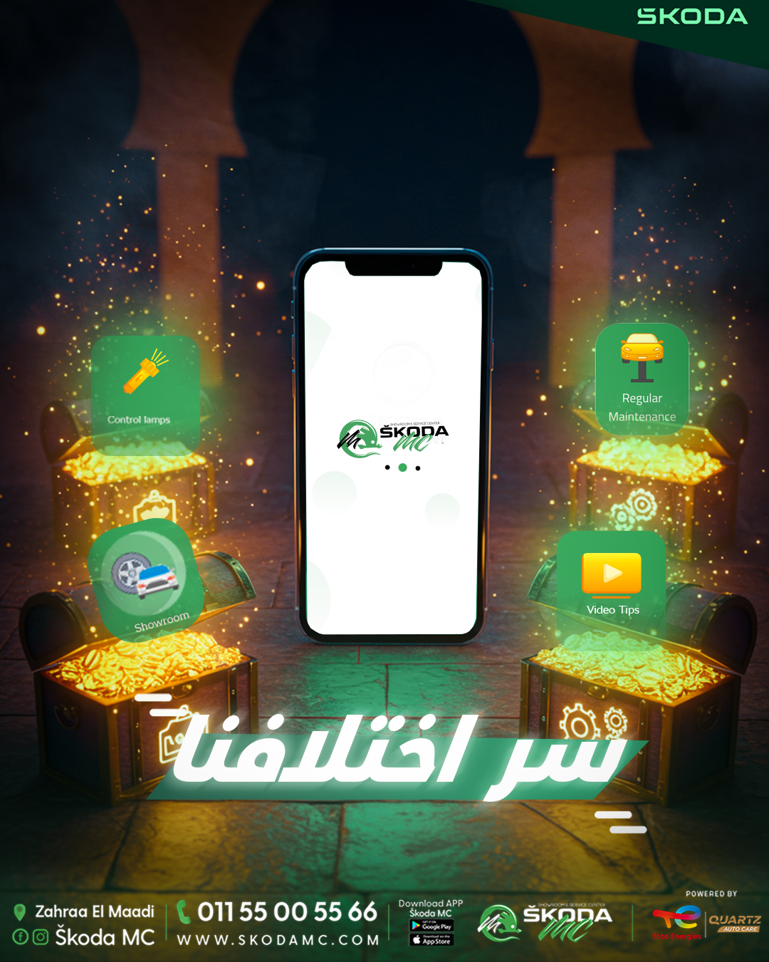 كل حاجة لعربيتك في موبايلك!😍 احجز الصيانة، تابع العروض، واعرف كل جديد بسرعة وسهولة حمّل الأبلكيشن وخلي عربيتك دايمًا جاهزة ومستعدّة لأي رحلة💪🏻 سكودا معادي سنتر.. مركز الثقة